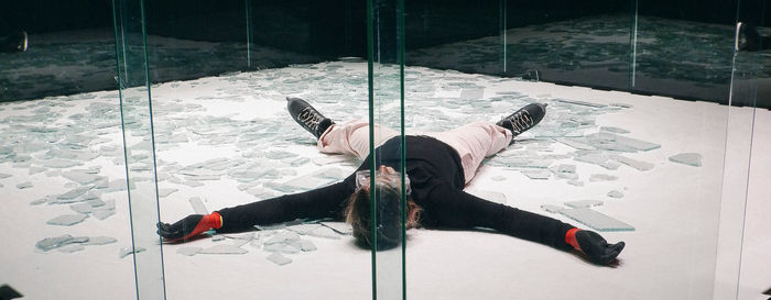 In ‘Ice Skates And Other Cruelties’ you will see smooth moves and sharp glass. Hopefully a carved body will slice the glass, and will it be avoided that the carved glass slices the body.